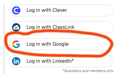 Students will login to SchooLinks via by going to SchooLinks.com, then clickicking the "Log in with Google" link on their screen that looks like the image below: